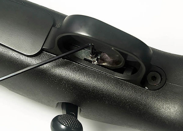 A wider, textured trigger allowing more sensitive shooting and easier adjustment.